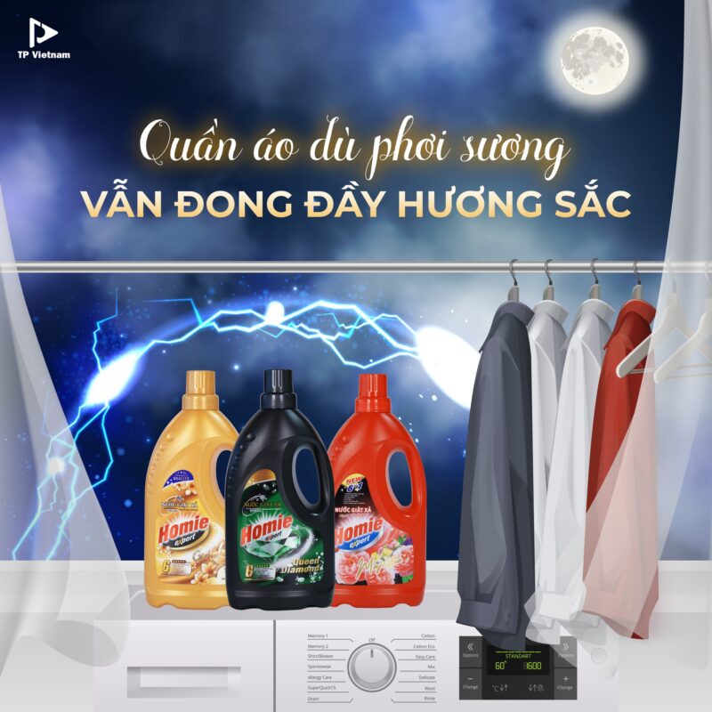 ✔Và cuối cùng là chọn 1 loại nước giặt phù hợp để giặt vào ban đêm. Chọn Homie với công thức chứa Ion Bạc giúp diệt vi khuẩn gây mùi, đánh bay mùi ẩm mốc ngay cả khi giặt và phơi vào ban đêm.